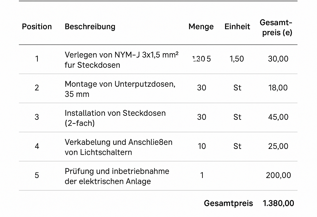 Ein Beispiel für das Leistungsverzeichnis für Elektriker: